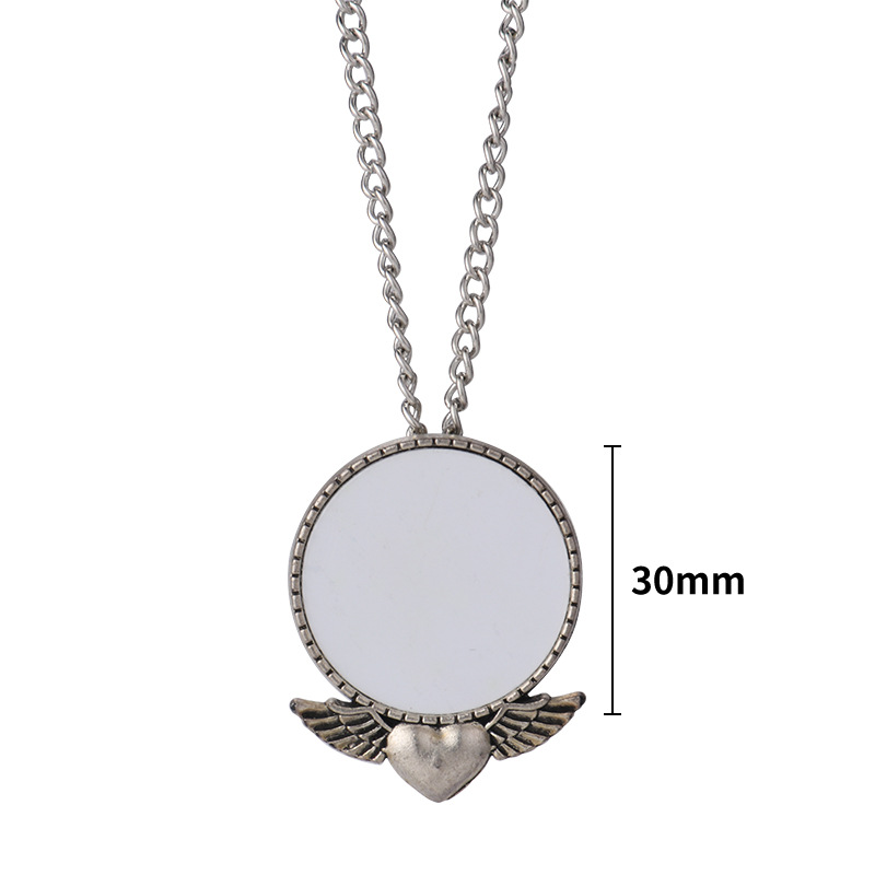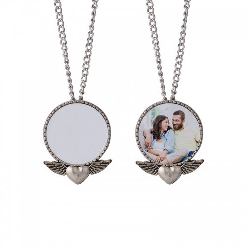 Sublimation vintage love wings round pendant necklace